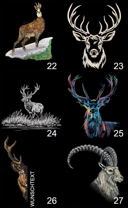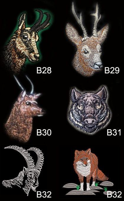 Bruststickmuster sind mit einem B gekenzeichent, da nicht alle Rückenstickmuster auch als kleines motiv möglich sin. Die Auswahl wird zeitnah aufgestockt.
