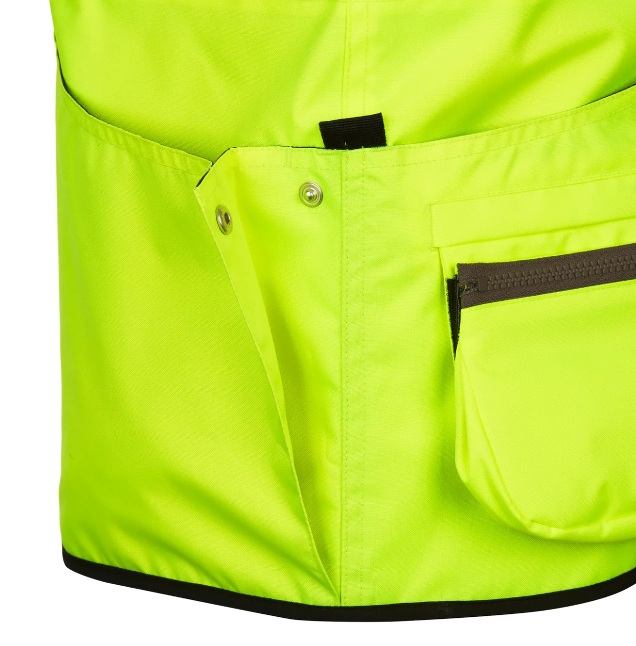 • Praktische Taschenanordnung: Die Weste verfügt über zwei Vordertaschen und eine durchgehende Rückentasche, die ausreichend Platz für Ausrüstung und Zubehör bieten. Die linke Brusttasche mit Velcroverschluss ist perfekt für schnell zugängliche Utensilien.