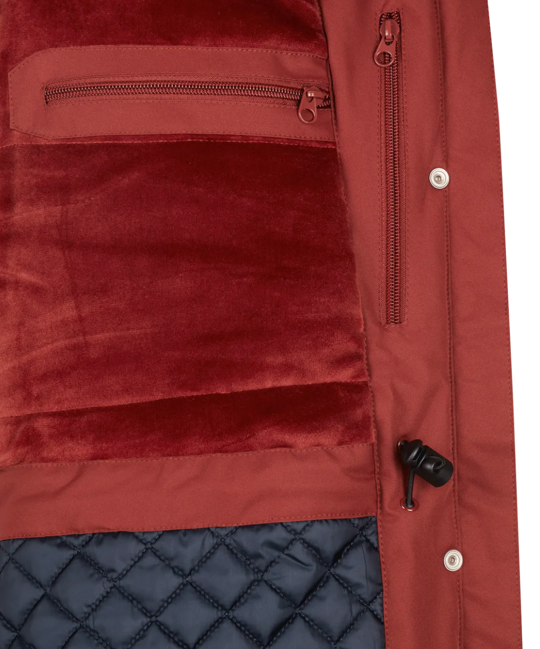- Komfortable Details: Der durchgehende 2-Wege-Frontreissverschluss mit Abdeckleiste, Sturmbündchen an den Ärmeln und ein Kordelzug im Hüftbereich bieten eine optimale Passform und zusätzlichen Schutz vor Kälte.