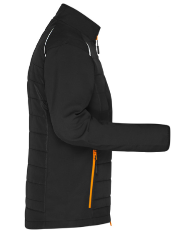 • Pflegeleichtes 2-Lagen Softshell-Material kombiniert mit gesteppten Einsätzen im Vorder- und Rückenteil