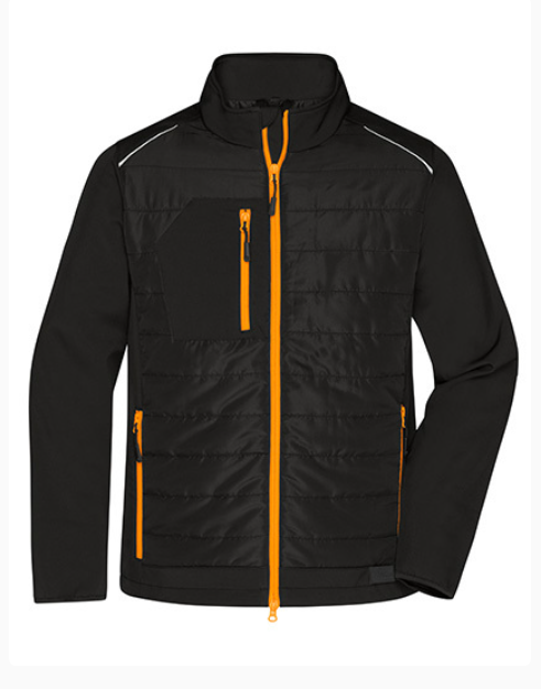 - Pflegeleichtes 2-Lagen Softshell-Material kombiniert mit gesteppten Einsätzen im Vorder- und Rückenteil
