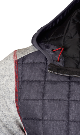 - Vorder-, Rückenteil und Kapuze in gestepptem Karodesign