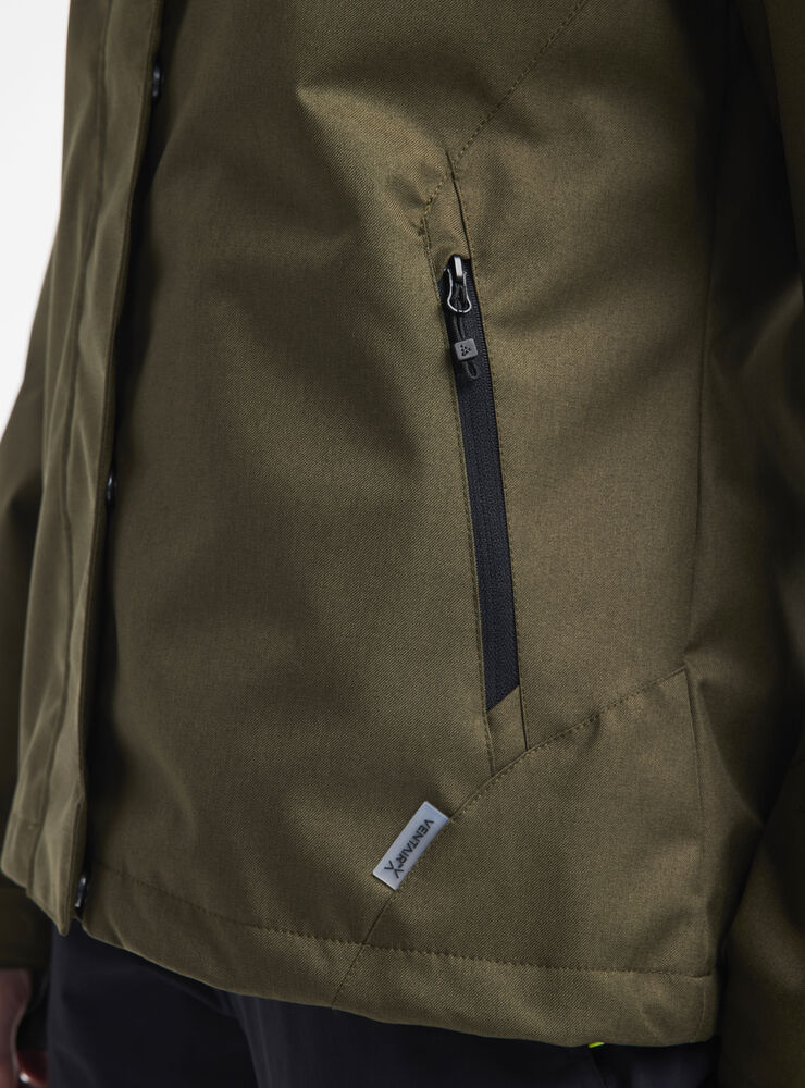 - Zwei Eingrifftaschen an den Seiten mit Reissverschluss und Skitasche mit Reissverschluss am Ärmel