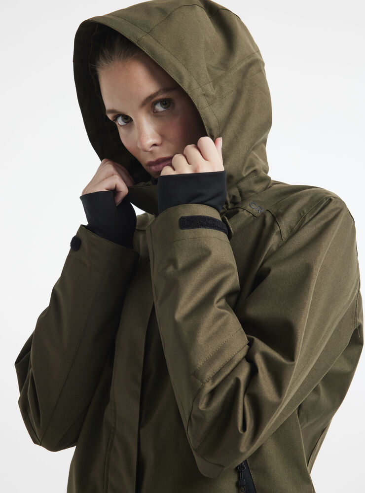Moderne Jacke, aus wind- und wasserdichtem Material (WP 8000/MVP 8000) mit hohem Kragen und abnehmbarer Kapuze.